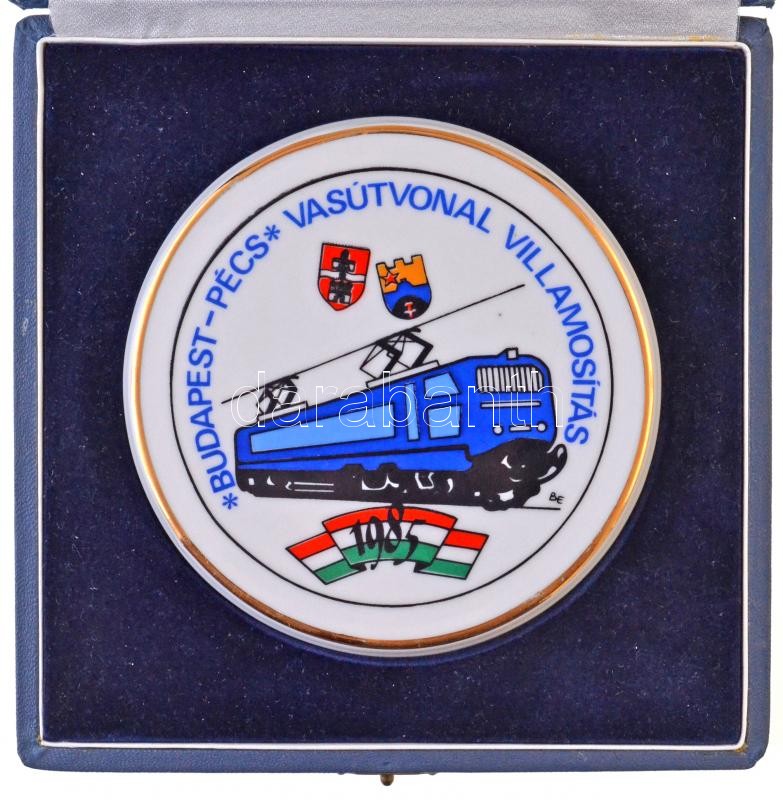 1985. "Budapest-Pécs Vasútvonal Villamosítás" festett, egyol... https://www.darabanth.com/de/336-Fernauktion/336.0/Numismatik/Ungarische-Gedenkmunzen-Plaketten~1500009/1985-Budapest-Pecs-Vasutvonal-Villamositas-festett-egyoldalas-porcelan-plakett-hatoldala~II1889265