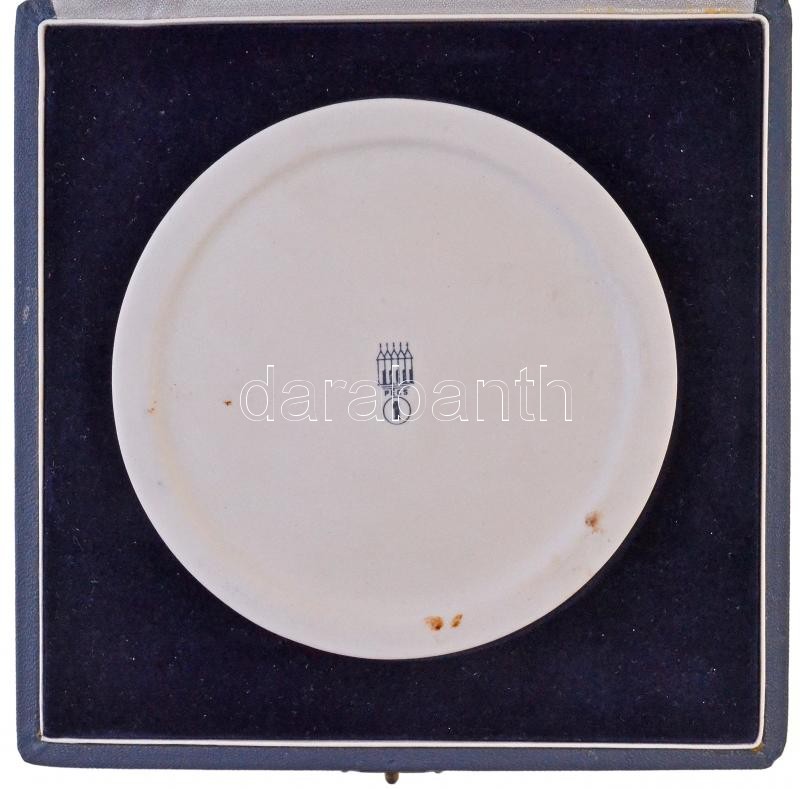 Beschreibung: 1985. "Budapest-Pécs Vasútvonal Villamosítás" festett, egyoldalas porcelán plakett, hátoldalán jelzett, eredeti tokban. Szign.: BE (114mm) T:1-
