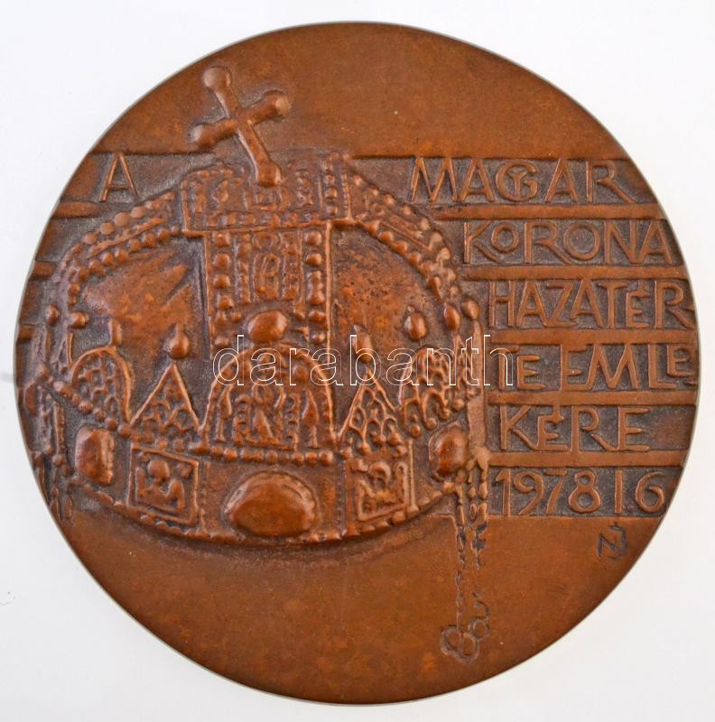 Nagy István János (1938-) 1978. "A Magyar Korona hazatérte emléké... https://www.darabanth.com/de/336-Fernauktion/336.0/Numismatik/Ungarische-Gedenkmunzen-Plaketten~1500009/Nagy-Istvan-Janos-1938-1978-A-Magyar-Korona-hazaterte-emlekere-Br-emlekplakett-96mm-T~II1840109