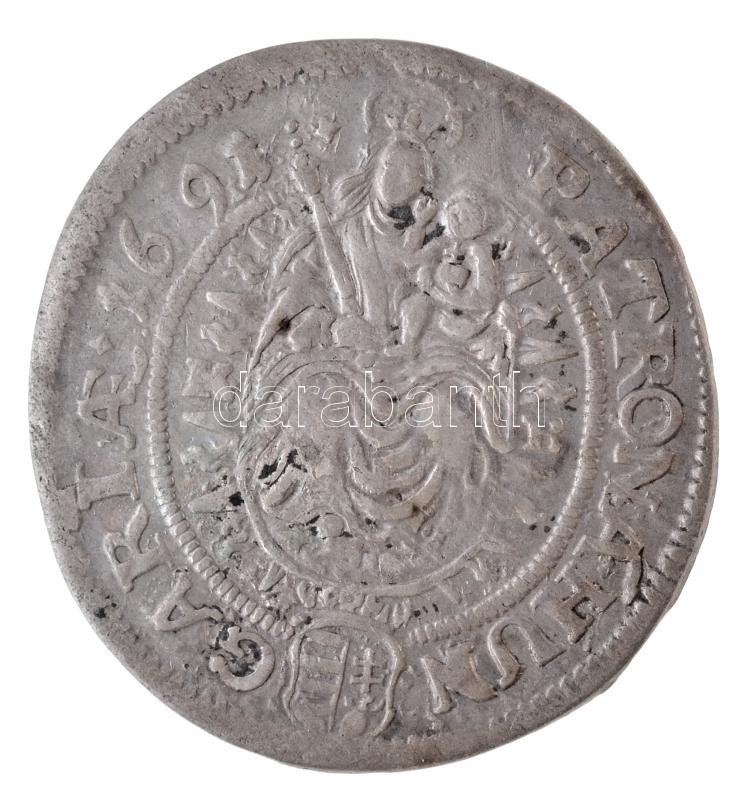 Hungary 1691K-B 15 Kreuzer Ag "Leopold I" (5,49g) C:VF
