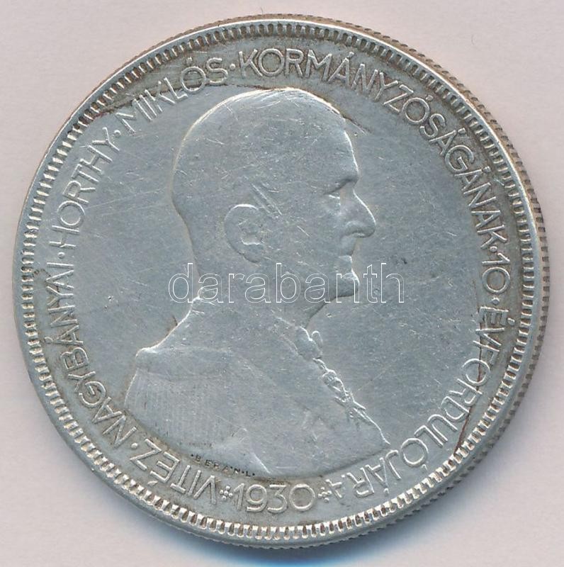 1930. 5P Ag "Horthy jobbra" T:3 fo.