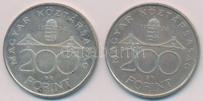 1994. 200Ft Ag "Deák" (2x) T:2 https://www.darabanth.com/de/336-Fernauktion/336.0/Numismatik/Ungarische-Munzen-und-Munzen-mit-ungarischem-Munzzeichen~1500008/1994-200Ft-Ag-Deak-2x-T2~II1884091