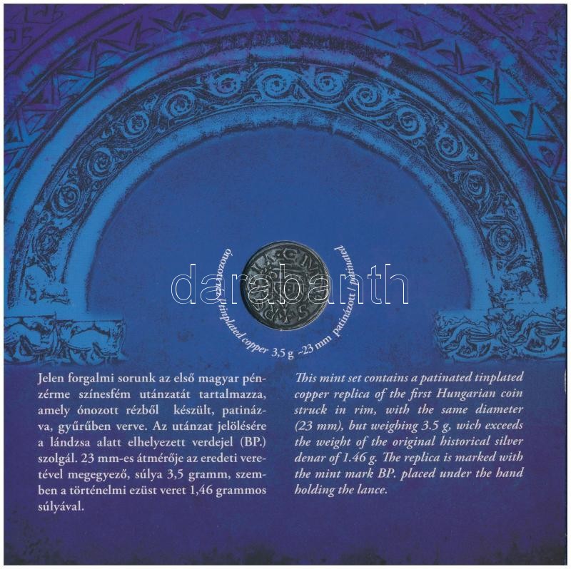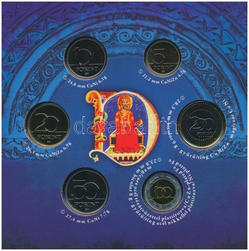 Beschreibung: 2014. 5Ft-200Ft (6xklf) "Lancea Regis" forgalmi sor szettben, benne ónozott réz Szent István denár utánzat érme T:BU