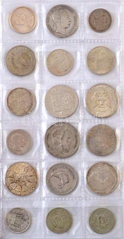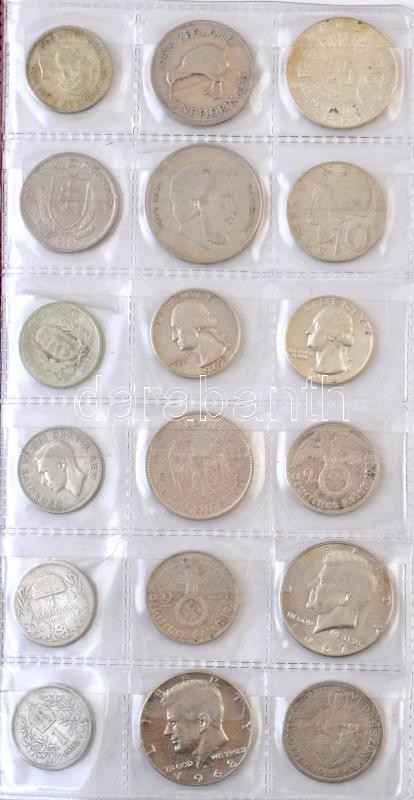50db-os vegyes magyar és külföldi ezüstpénz tétel albumban, közte Amerikai Egyesült Államok, Ausztria, Német Harmadik Birodalom, Új-Zéland T:1-,2,3 50pcs of various silver coins in album, including USA, Austria, Hungary, German Third Reich, New Zealand C:AU,XF,F