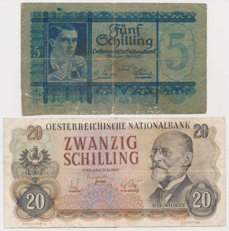 Ausztria 1927. 5Sch + 1956. 20Sch T:III,III- szakadás, ly.
