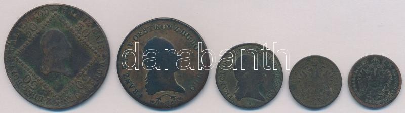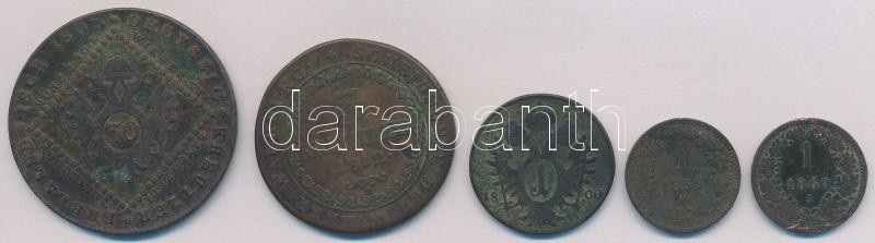 5db-os vegyes magyar és osztrák rézkrajcár tétel, közte 1807A 30kr Cu; 1859B 1kr Cu T:2-,3