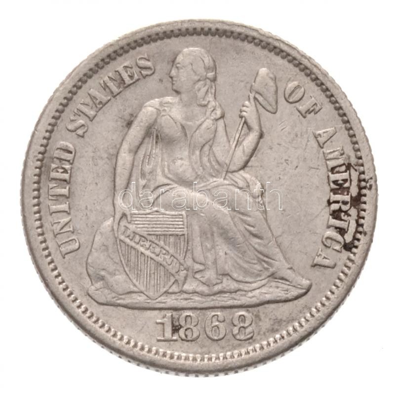 USA 1868. 1 Dim... https://www.darabanth.com/de/336-Fernauktion/336.0/Numismatik/Weltweit-Munzen~1500013/Amerikai-Egyesult-Allamok-1868-1d-Ag-2-48g-T3-ph-USA-1868-1-Dime-Ag-2-48g-CF-edge-error-~II1885012