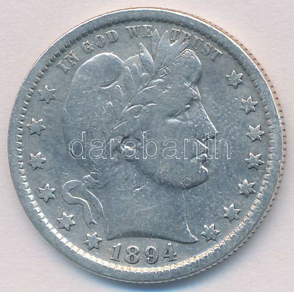 Beschreibung: Amerikai Egyesült Államok 1894S 1/4D Ag (6,06g) T:3