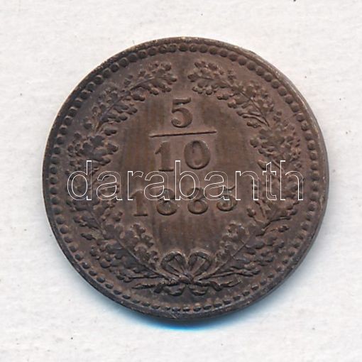Austria 1885. 5/10 Kreuzer Cu C:AU