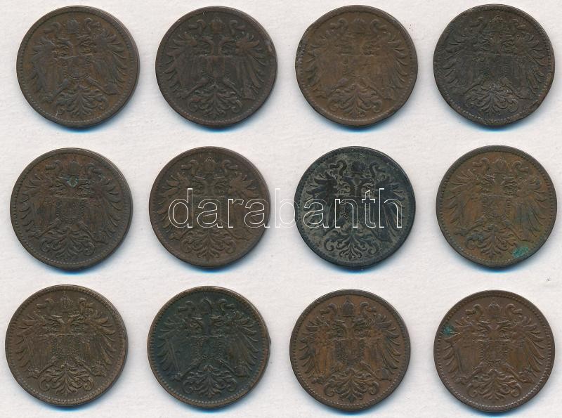 Austria 1899-1915. 2 Heller Br (12xdiff) C:XF,VF