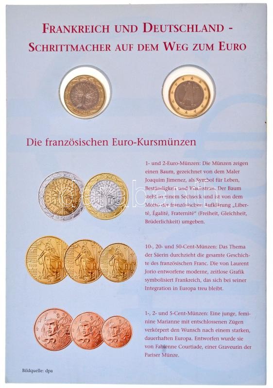 Franciaország 1999. 1E + Németország 2003. 1E a két érme a Német-Francia Együttműködés 40. évfordulójára kiadott német nyelvű karton díszlapon T:1,1-