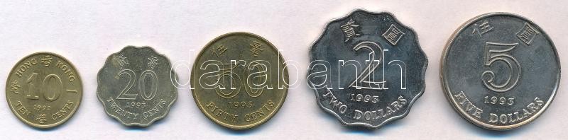 Hong Kong 1992-1993. 10 Cents - 5 Dollars (5xdiff) C:AU,XF