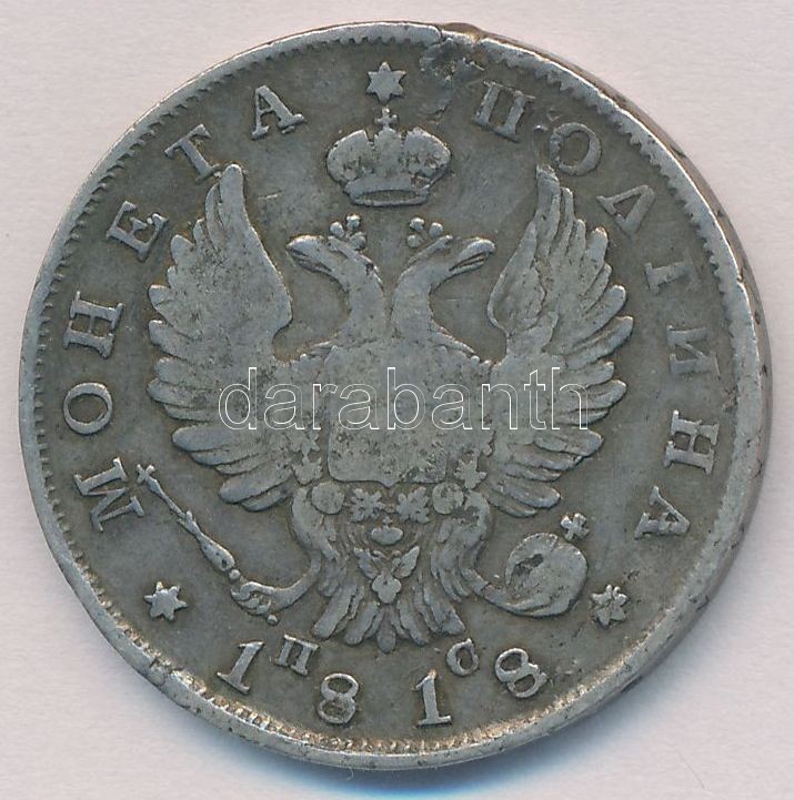 Orosz Birodalom 1818. Poltina (1/2R) Ag "I. Sándor" (9,91g) ... https://www.darabanth.com/de/336-Fernauktion/336.0/Numismatik/Weltweit-Munzen~1500013/Orosz-Birodalom-1818-Poltina-12R-Ag-I-Sandor-9-91g-T2-ph--Russian-Empire-1818-Poltina-~II1885205