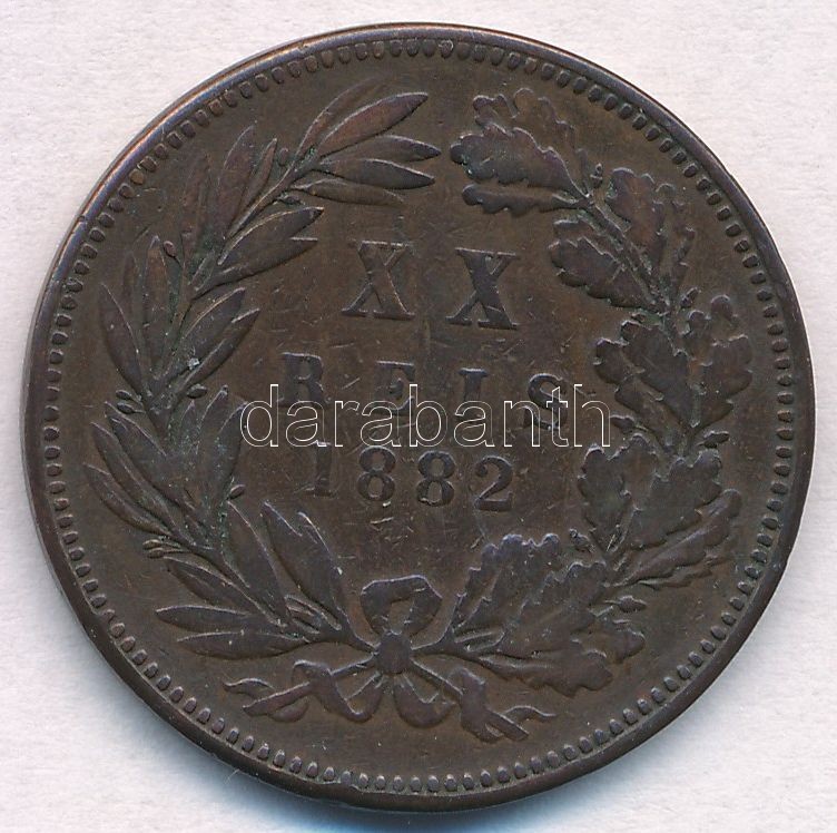 Portugal 1882. 20 R... https://www.darabanth.com/de/336-Fernauktion/336.0/Numismatik/Weltweit-Munzen~1500013/Portugalia-1882-20R-Br-I-Lajos-T2--Portugal-1882-20-Reis-Br-Luis-I-CVF~II1841013