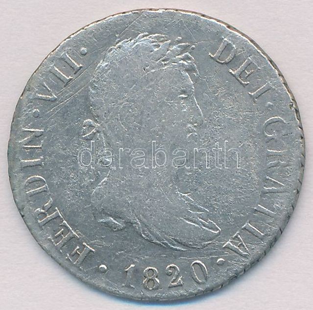 Sp... https://www.darabanth.com/de/336-Fernauktion/336.0/Numismatik/Weltweit-Munzen~1500013/Spanyolorszag-1820GJ-2R-Ag-VII-Ferdinand-5-58g-T2--Spain-1820GJ-2-Reales-Ag-Ferdinand-VII~II1885334
