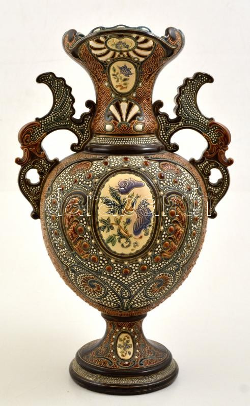 Beschreibung: Gerbing & Stephan díszváza, kézzel festett, jelzett, hibátlan, m: 36 cm