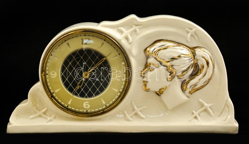 Beschreibung: Wert Germany lányfejes fajansz asztali óra, jelzett, hibátlan, hibás szerkezettel, 40×20,5 cm