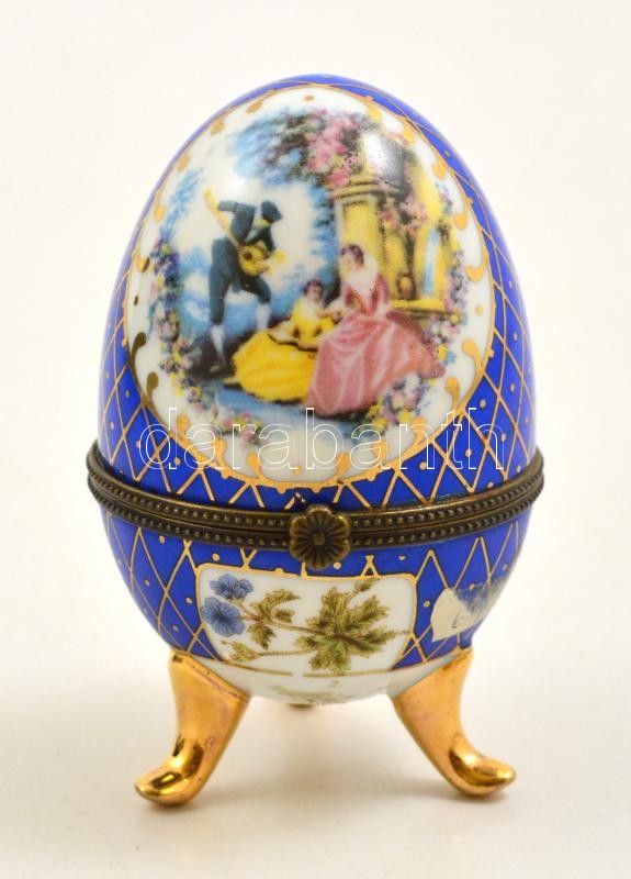 Beschreibung: Limoges porcelán tojás fém szerelékkel, matricás, jelzett, kis kopásokkal, m: 9,5 cm