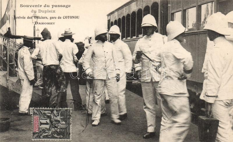 Cotonou, Souvenir du passage du Dupleix, Arrivée des Officiers, gare /... https://www.darabanth.com/de/337-Fernauktion/337.0/Ansichtskarten/Benin-Dahomey~2000017/Cotonou-Souvenir-du-passage-du-Dupleix-Arrivee-des-Officiers-gare-arrival-of-the-officers-at-t~II1827452