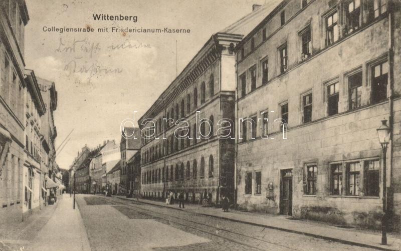 Wittenberg, Collegienstrasse mit Friedericianum-Kaserne / street view ... https://www.darabanth.com/de/337-Fernauktion/337.0/Ansichtskarten/Deutschland~2000040/Wittenberg-Collegienstrasse-mit-Friedericianum-Kaserne-street-view-with-military-barracks-EK~II1894274
