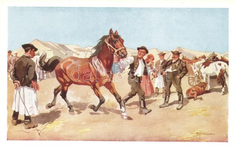 Lóvásár; Hortobágyi folklór művészlap / Hungarian folklore art postcar... https://www.darabanth.com/de/337-Fernauktion/337.0/Ansichtskarten/Folklore~2000058/Lovasar-Hortobagyi-folklor-muveszlap-Hungarian-folklore-art-postcard-s-Benyovszky~II1892019