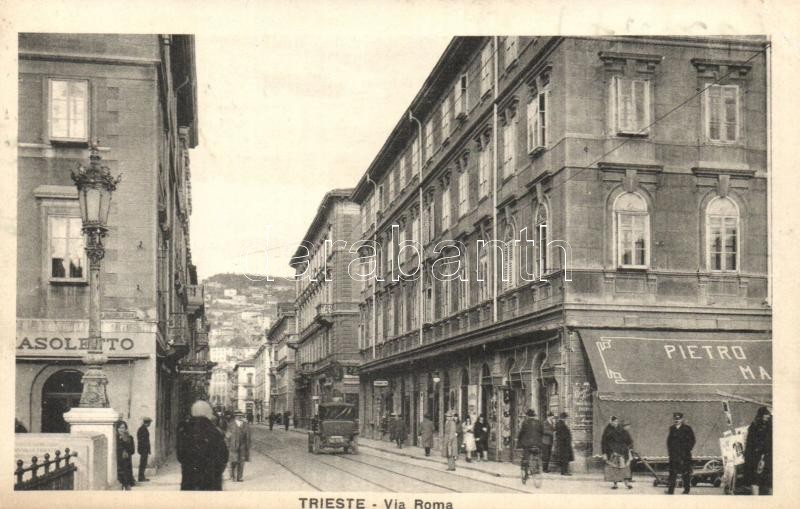 Trieste, Trieszt; Via Roma, Pietro Ma. / street view with shops, autom... https://www.darabanth.com/de/337-Fernauktion/337.0/Ansichtskarten/Italien~2000042/Trieste-Trieszt-Via-Roma-Pietro-Ma-street-view-with-shops-automobile-EK~II1893463
