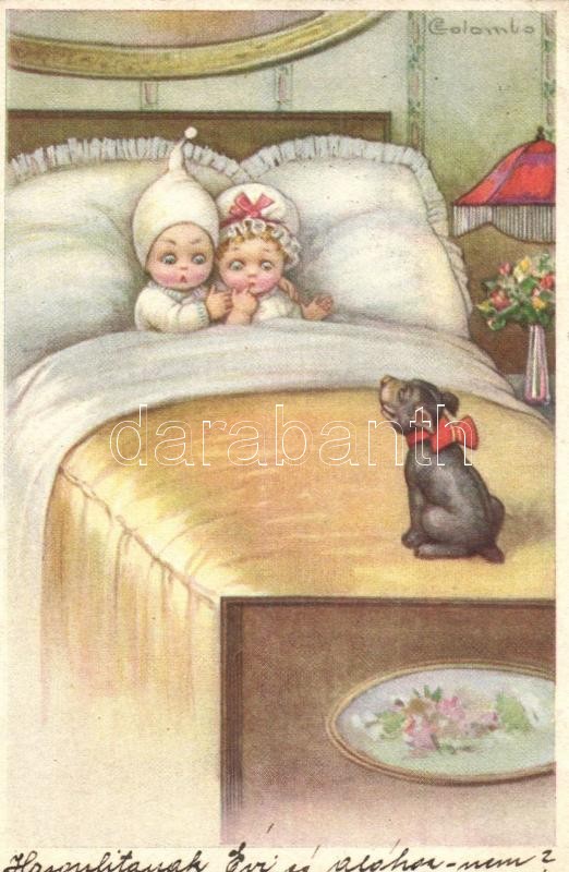 Children in bed with dog; Proprieta Artistica riservata 1923-4. s: Col... https://www.darabanth.com/de/337-Fernauktion/337.0/Ansichtskarten/Kinder~2000059/Children-in-bed-with-dog-Proprieta-Artistica-riservata-1923-4-s-Colombo-EK~II1893742