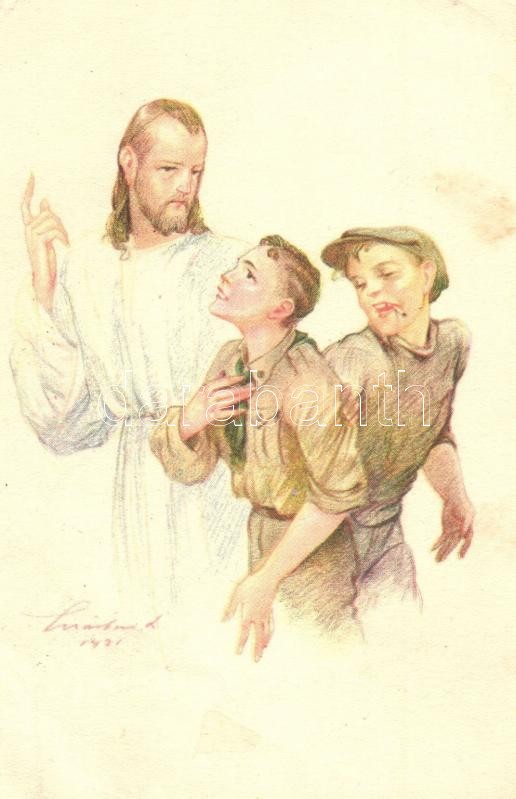 Beschreibung: A cserkész egyeneslelkű. A Magyar Cserkészszövetség kiadása / Hungarian boy scout art postcard s: Márton L. (EB)