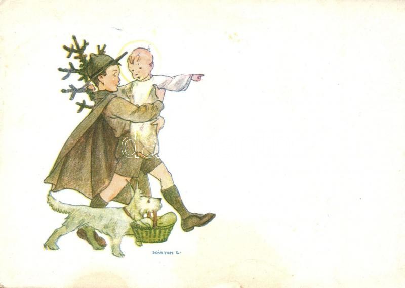 Beschreibung: Cserkész angyallal és kutyával. Kiadja Márton L. műterme / Hungarian boy scout art postcard s: Márton L. (kis szakadás / small tear)