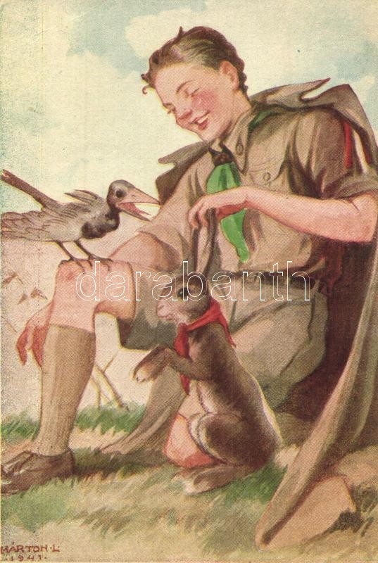 Márton L.-féle Cserkészlevelezőlapok Kiadóhivatala / Hungarian boy sc... https://www.darabanth.com/de/337-Fernauktion/337.0/Ansichtskarten/Pfadfinder~2000056/Marton-L-fele-Cserkeszlevelezolapok-Kiadohivatala-Hungarian-boy-scout-art-postcard-rabbit-~II1892041