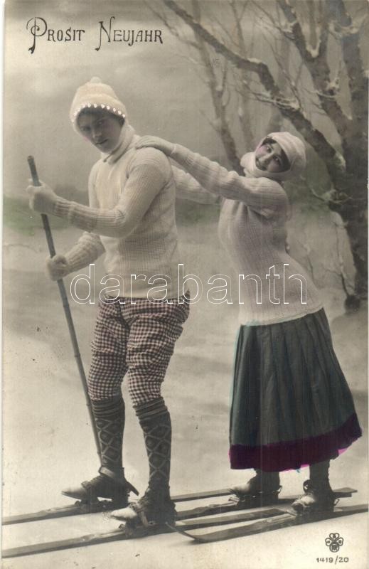 Prosit Neujahr / New year greeting art postcard, skiing couple + Deuts... https://www.darabanth.com/de/337-Fernauktion/337.0/Ansichtskarten/Sport~2000078/Prosit-Neujahr-New-year-greeting-art-postcard-skiing-couple-plus-Deutscher-Schulverein-stamps-on-the~II1891212