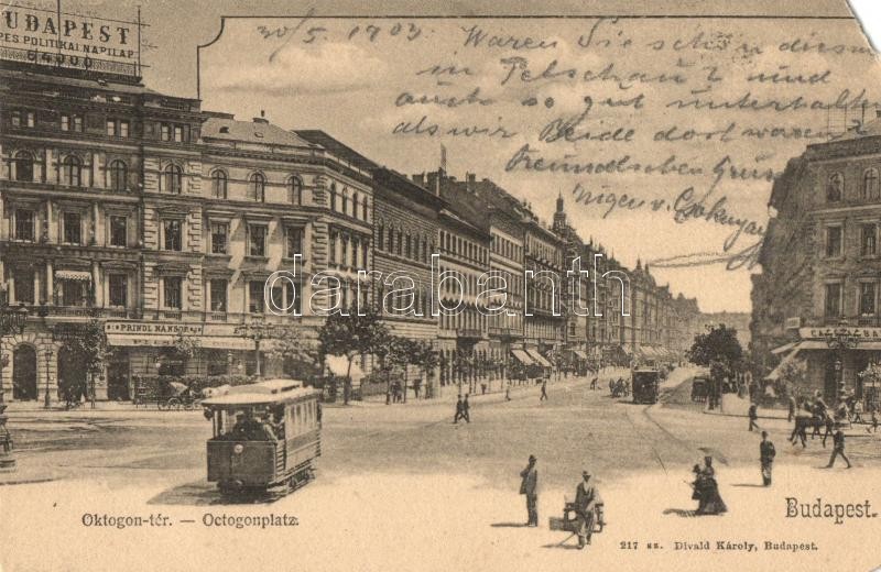 1903 Budapest VI. Oktogon, villamos, Prindl Nándor üzlete, Café Abbazi... https://www.darabanth.com/de/337-Fernauktion/337.0/Ansichtskarten/Ungarn~2000005/1903-Budapest-VI-Oktogon-villamos-Prindl-Nandor-uzlete-Cafe-Abbazia-kavehaz-EM~II1891791