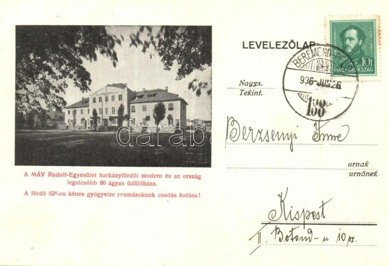 1936 Harkányfürdő, MÁV Rudolf Egyesület üdülőháza, reklámlap https://www.darabanth.com/de/337-Fernauktion/337.0/Ansichtskarten/Ungarn~2000005/1936-Harkanyfurdo-MAV-Rudolf-Egyesulet-udulohaza-reklamlap~II1893707