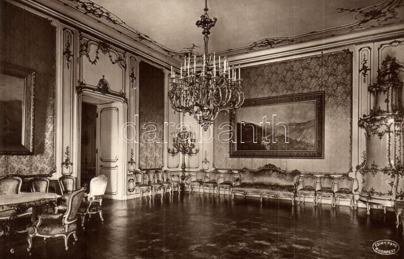Budapest I. Királyi palota, Kék szalon, belső; Csiky Foto https://www.darabanth.com/de/337-Fernauktion/337.0/Ansichtskarten/Ungarn~2000005/Budapest-I-Kiralyi-palota-Kek-szalon-belso-Csiky-Foto~II1891994
