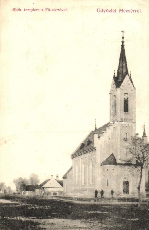 Mecsér, Katolikus templom, Fő utca https://www.darabanth.com/de/337-Fernauktion/337.0/Ansichtskarten/Ungarn~2000005/Mecser-Katolikus-templom-Fo-utca~II1895432