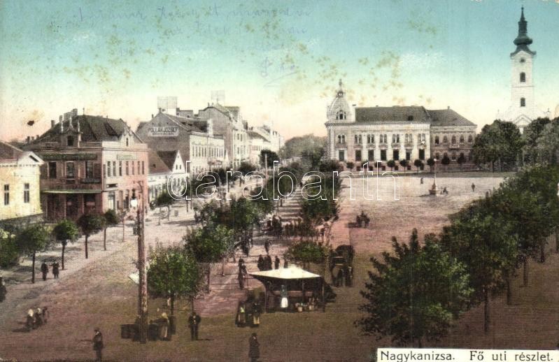 Beschreibung: Nagykanizsa, Fő út, Pollak József üzlete, piaci árusok. Kiadja a Hirschler tőzsde (b)
