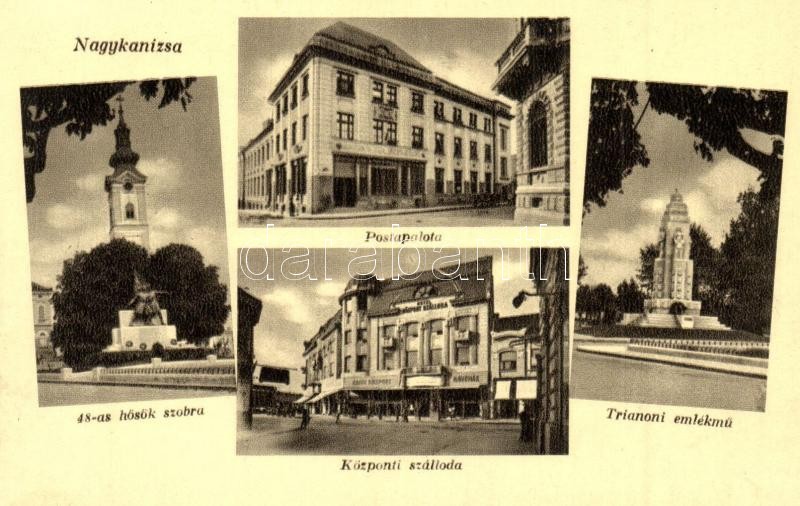 Nagykanizsa, Postapalota, 48-as hősök szobra, Központi szálloda, Trian... https://www.darabanth.com/de/337-Fernauktion/337.0/Ansichtskarten/Ungarn~2000005/Nagykanizsa-Postapalota-48-as-hosok-szobra-Kozponti-szalloda-Trianoni-emlekmu~II1894062