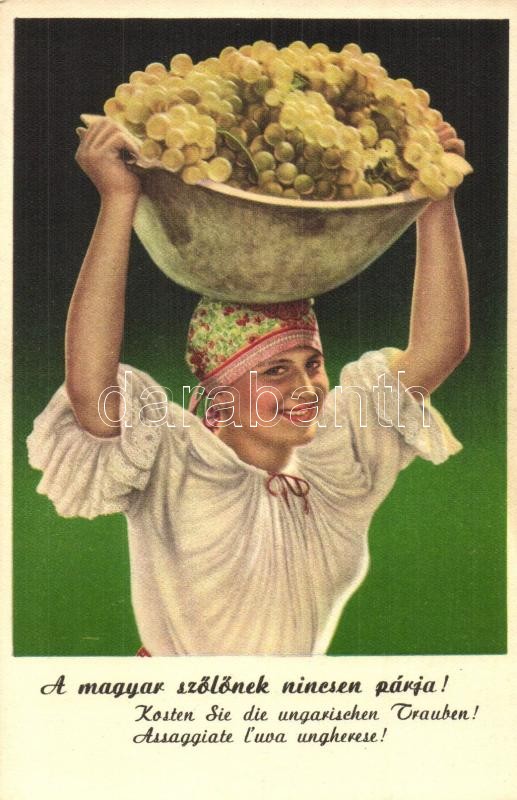 A magyar szőlőnek nincsen párja. Magyar szőlőreklám, folklór, Klösz Gy... https://www.darabanth.com/de/337-Fernauktion/337.0/Ansichtskarten/Werbungen~2000075/A-magyar-szolonek-nincsen-parja-Magyar-szoloreklam-folklor-Klosz-Gyorgy-es-Fia-kiadasa~II1892790