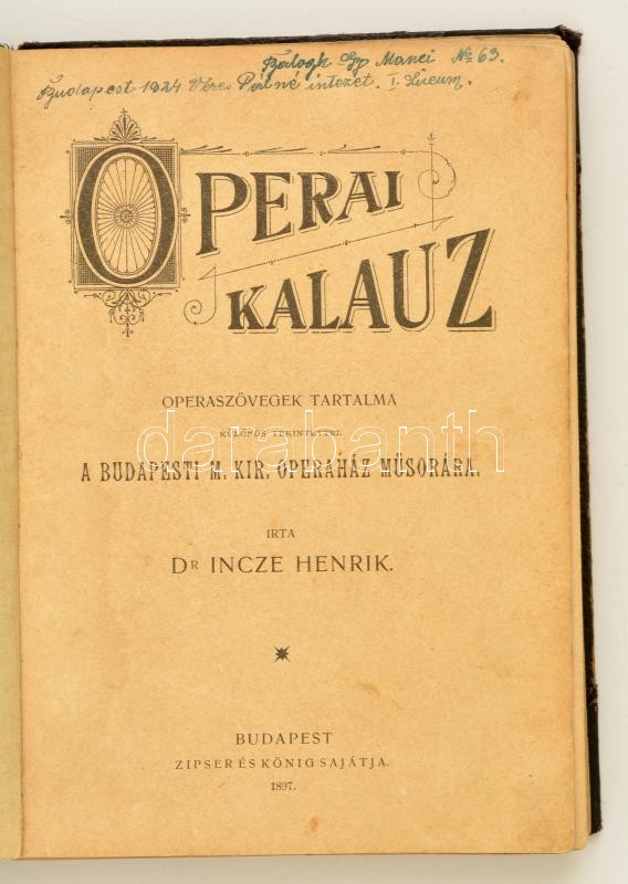 Dr. Incze Henrik: Operai kalauz. Operaszövegek tartalma. Bp., 1897, Zi... https://www.darabanth.com/de/337-Fernauktion/337.0/Bucher/Bucher-Architektur-Kunst~1000006/Dr-Incze-Henrik-Operai-kalauz-Operaszovegek-tartalma-Bp-1897-Zipser-es-Konig-Atkotott-~II1609648
