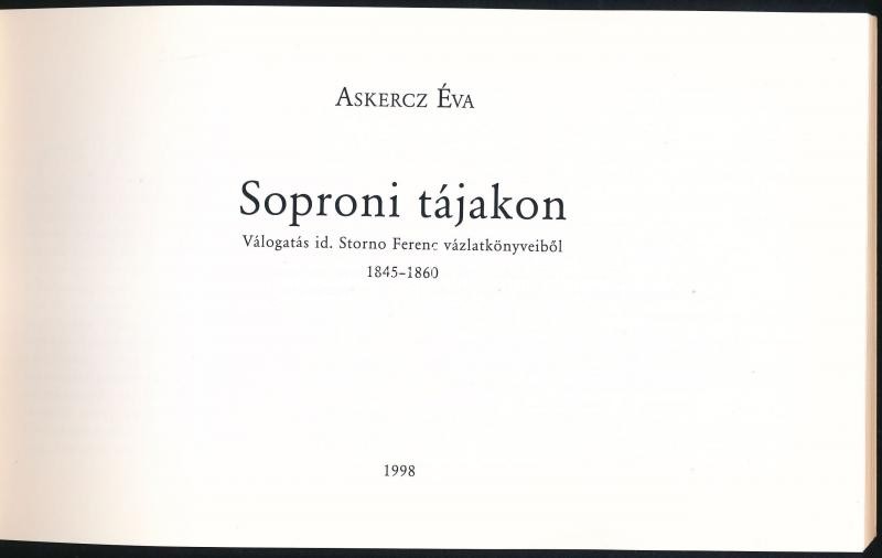 Askercz Éva: Soproni tájakon. Válogatás id. Storno Ferenc vázlatkönyvé... https://www.darabanth.com/de/337-Fernauktion/337.0/Bucher/Bucher-Reise-und-Ortgeschichte~1000001/Askercz-Eva-Soproni-tajakon-Valogatas-id-Storno-Ferenc-vazlatkonyvebol-1845-1860-Bp-1~II1891201