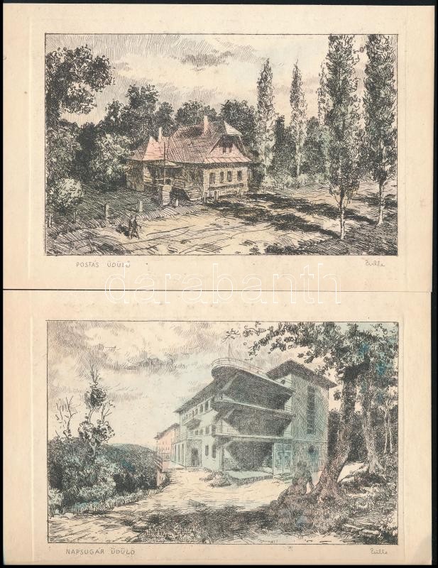 Zsille Győző (1925-): 3 db üdülőket ábrázoló rézkarc. 9x13 cm https://www.darabanth.com/de/337-Fernauktion/337.0/Gemalde-und-Grafiken/Gemalde-und-Grafiken~500001/Zsille-Gyozo-1925-3-db-uduloket-abrazolo-rezkarc-9x13-cm~II1892344