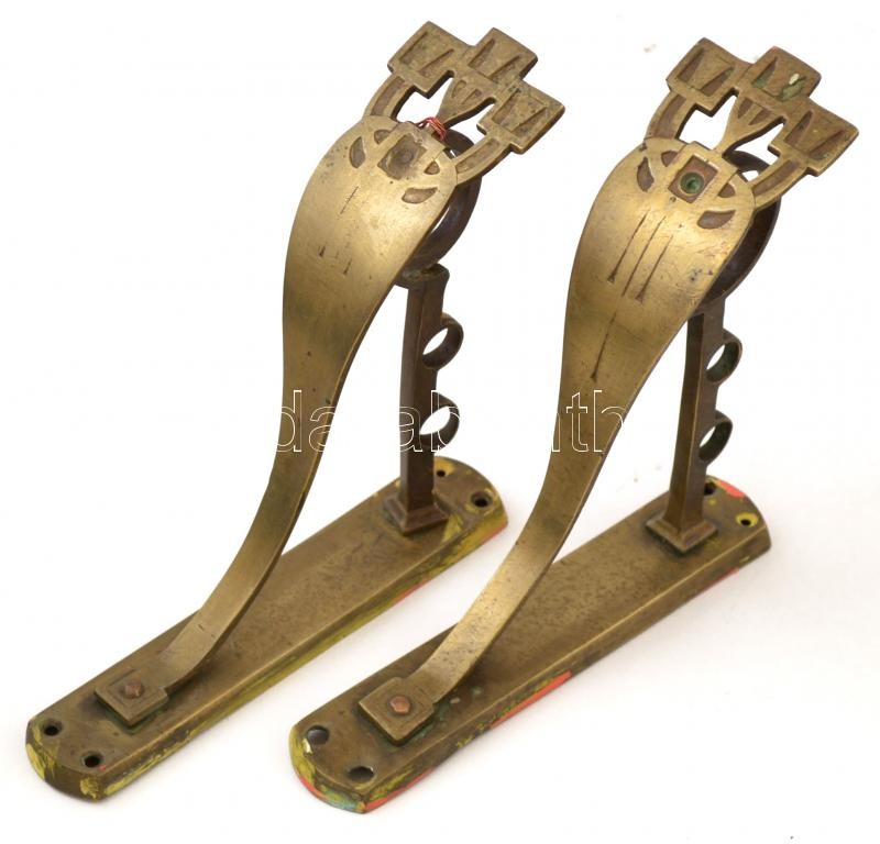 Beschreibung: Díszes szecessziós réz fogas pár, 18,5×18,5×5,5 cm