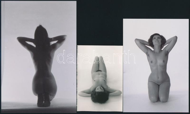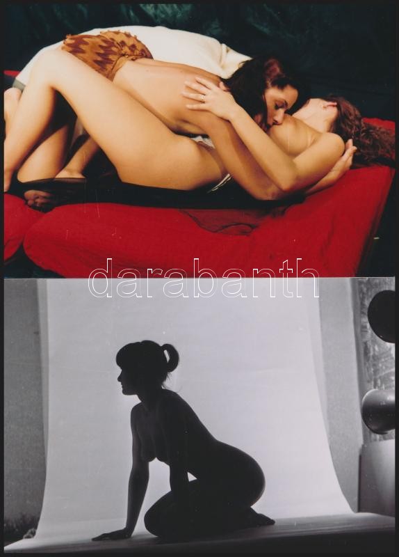 cca 1976 Ex-pozíciók, szolidan erotikus felvételek, 9 db vintage negatív + 9 db vintage fotó és/vagy mai nagyítás, 24x36 mm és 25x18 cm között, a negatívok és a papírképek között nincs összefüggés