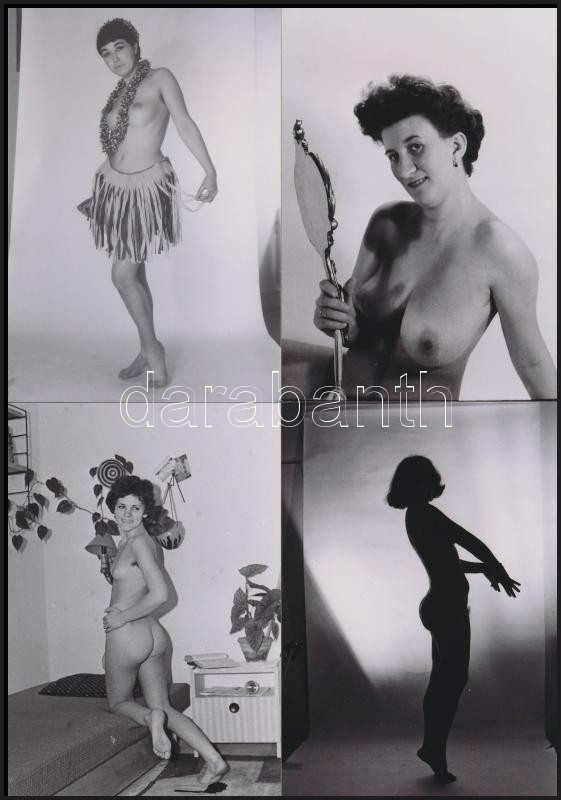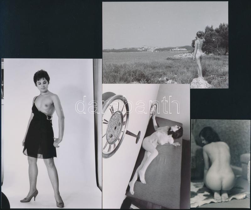 cca 1985 A szabadidő remek eltöltése, szolidan erotikus felvételek, 6 db vintage negatív (6x6 cm) + 9 vintage fotó és/vagy mai nagyítás, 6x9 cm és 25x18 cm között, a negatívok és a papírképek között nincs összefüggés