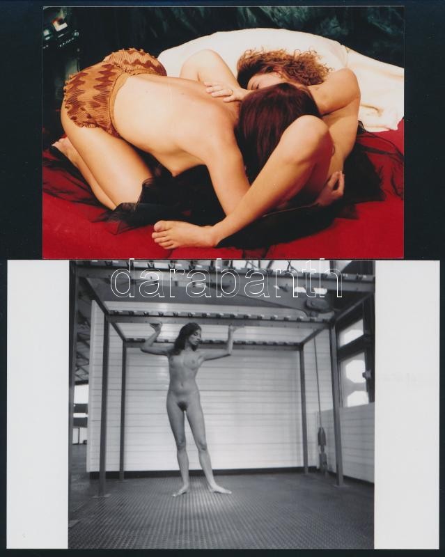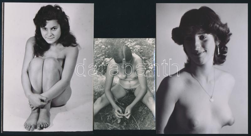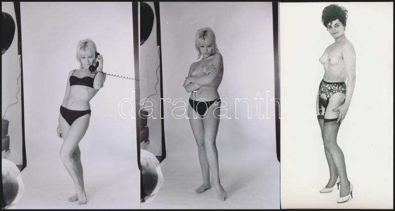 cca 1985 Izgalmas fotózások emlékei, szolidan erotikus felvételek, 8 db vintage negatív + 9 db vintage fotó és/vagy mai nagyítás, 6x6 cm és 25x18 cm között, a negatívok és a papírképek között nincs összefüggés