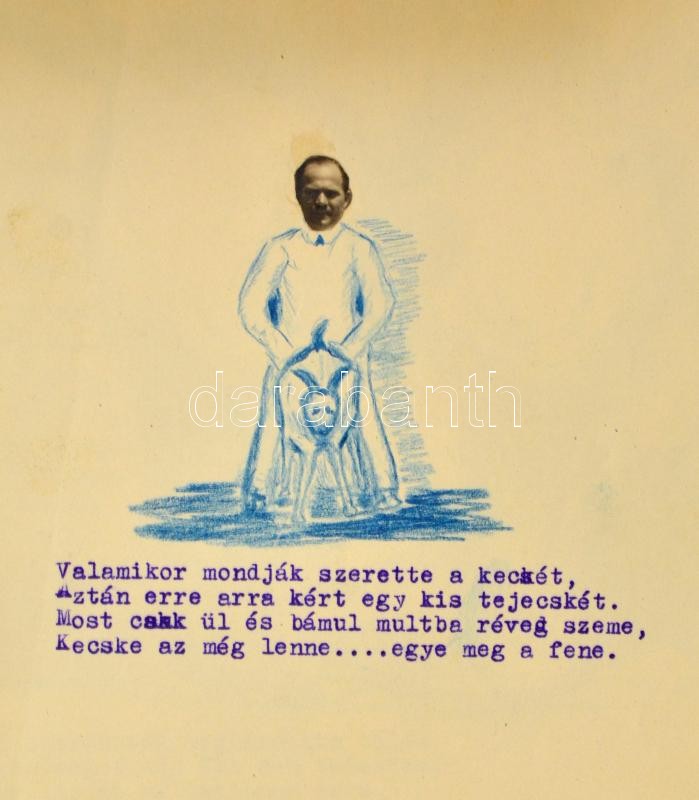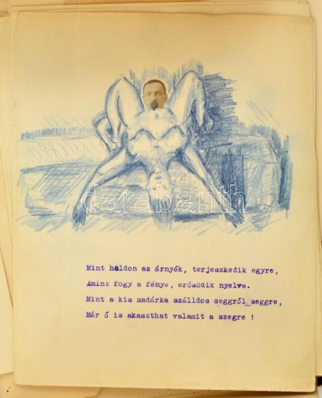 cca 1930-1940 Erotikus, pajzán kollázsokkal illusztrált versikék, 1 (előszó)+28 lap, az kettőn a ráragasztott kép hiányzik. 'Heyden-Folie' feliratú kopottas, kissé sérült félvászon mappában.