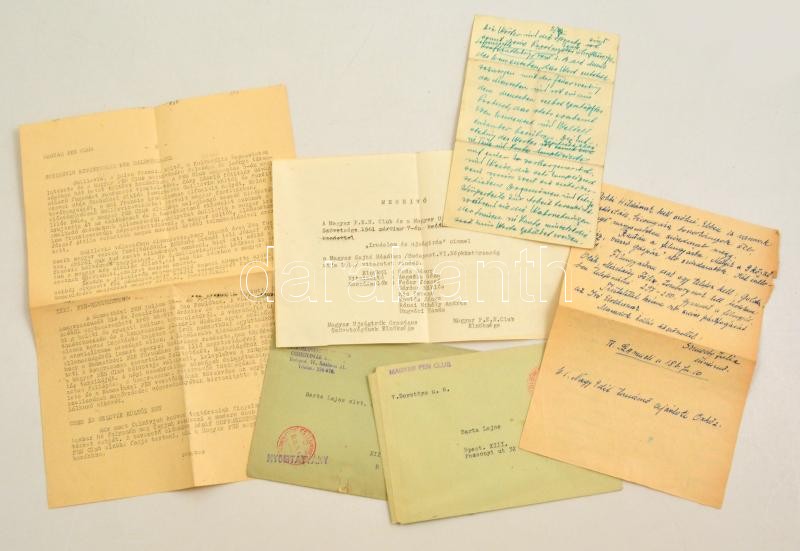 cca 1930-1950 Barta Lajos (1878-1964) írónak szóló 5 db levél többek között Somody Júlia színésznőtől, a Magyar Pen Clubtól