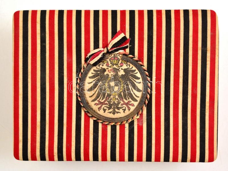 Beschreibung: cca 1910 Porosz címerrel díszített, szövettel bevont katonai emlék doboz 21x15x6 cm / Prussian military box with coat of arms, covered with linen.