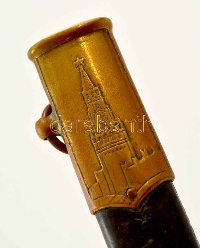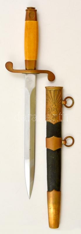 Beschreibung: cca 1970 Szovjet gyalogsági tőr, jelzett (ZIK), sorszámmal (106977), réz-bőr, műanyag, h:31 cm