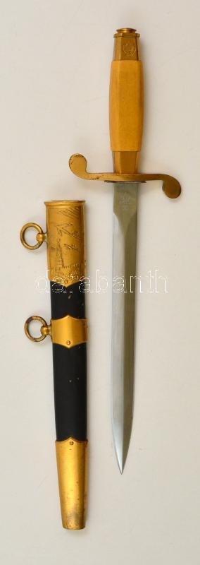 Beschreibung: cca 1970 Szovjet tőr (légierő), jelzett (ZIK), sorszámmal (607192), réz-bőr, műanyag, h:31 cm